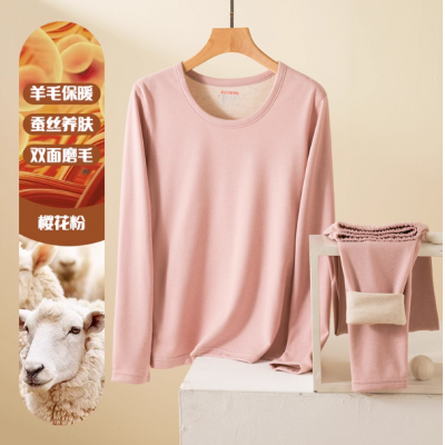 红蜻蜓保暖套装内衣男女同款蚕丝羊绒新款亲肤打底男士秋衣秋裤